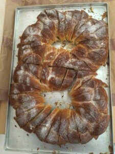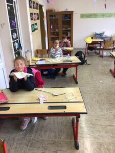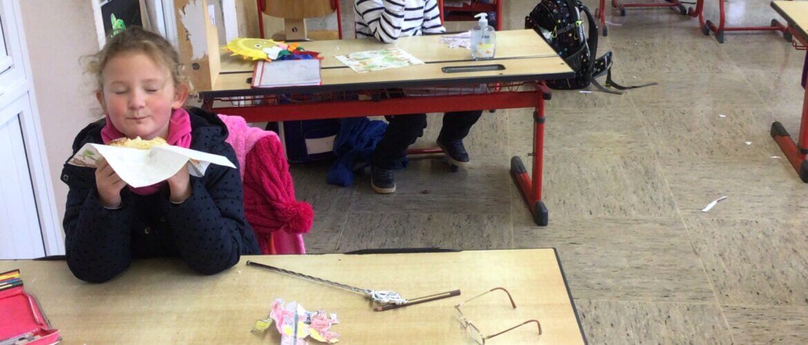 Anschließend gestalteten wir im Klassenraum eine St. Martinskarte und teilten, wie der Brauch es will, eine riesige Brezel. Das war lecker!