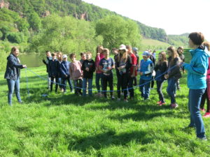 Um 8 Uhr frühstückten wir in der Jugendherberge. Es gab frische Brötchen, Obst, Gemüse und Müsli. Nach dem Frühstück packten wir unsere Koffer. Um 9 Uhr trafen wir uns auf dem Spielplatz vor der Herberge. Eine Frau namens Christiane holte uns dort für die „Klasse!Klasse!“ – Spiele ab. Wir gingen auf eine große Wiese an der Mosel und spielten viele tolle Gemeinschaftsspiele. Danach aßen wir in der Jugendherberge zu Mittag. Als wir alle fertig waren, machten wir uns auf den Weg zum Landesmuseum. Auf dem Weg kamen wir an einem Spielplatz vorbei. Wir spielten kurz, bevor wir ins Landesmuseum gingen. Dort machten wir eine Führung und lernten viel über Gladiatoren. Anschließend bastelten wir eigene Gladiatorenhelme. Um 17 Uhr machten wir uns auf den Weg zum Bahnhof. Wir mussten noch ein paar Minuten warten, bis der Zug kam. Nach ungefähr einer Stunde kamen wir pünktlich in Ürzig an. Unsere Eltern freuten sich, uns wiederzusehen. Es war ein tolles Erlebnis!