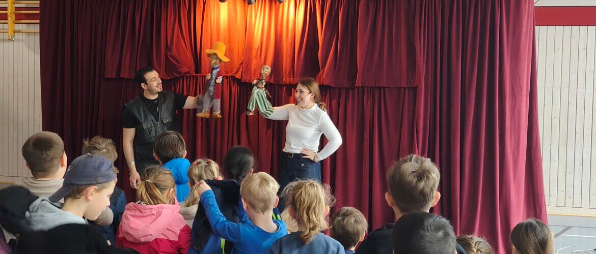 Am Donnerstag, den 12.03.2026, besuchte wieder wie jedes Jahr „Die Harzer Puppenbühne“ unsere Schule und führte in der Turnhalle das Stück „Ein Feuerwerk für den Fuchs“ aus der bekannten Reihe „Pettersson und Findus“ von Sven Nordqvist auf. Die Erst- und Zweitklässler hatten mit ihren Lehrern und Lehrerinnen viel Spaß bei der Aufführung, auch Dank der Zwischeneinlagen der Schnecke Meme.