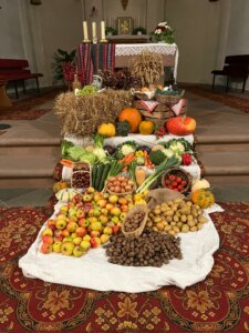 Die Klasse 3a und die Klasse 3b sind mit Frau Stoffels und Herrn Müller in die Kirche gegangen, um den Erntedankaltar anzuschauen. Als Erstes haben wir die Namen des Obstes und Gemüses aufgesagt. Danach haben wir ein Erntedanklied gesungen. Dann haben wir noch ein Erntedankgebet gesprochen. Anschließend haben wir uns auf den Rückweg zur Schule gemacht.