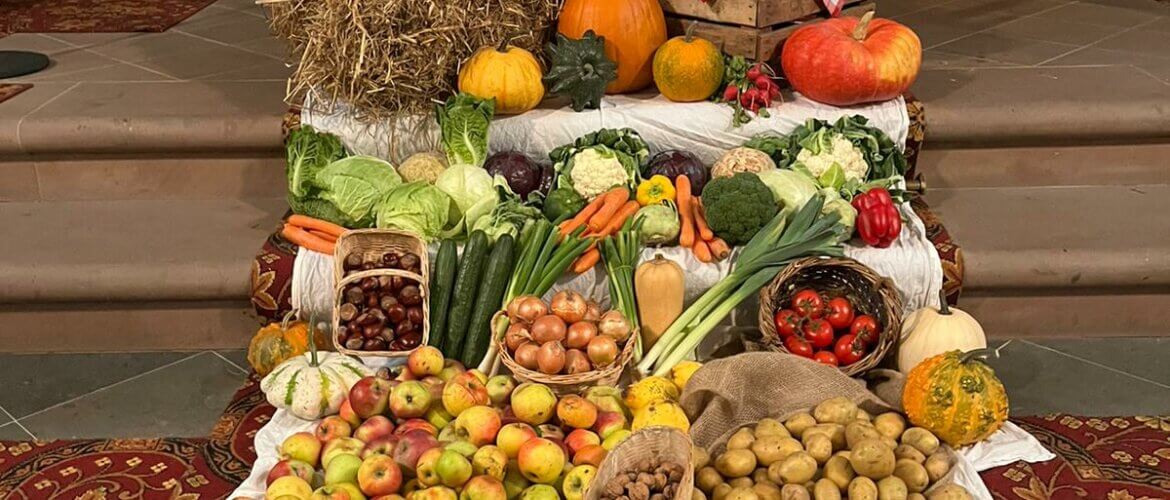 Die Klasse 3a und die Klasse 3b sind mit Frau Stoffels und Herrn Müller in die Kirche gegangen, um den Erntedankaltar anzuschauen. Als Erstes haben wir die Namen des Obstes und Gemüses aufgesagt. Danach haben wir ein Erntedanklied gesungen. Dann haben wir noch ein Erntedankgebet gesprochen. Anschließend haben wir uns auf den Rückweg zur Schule gemacht.