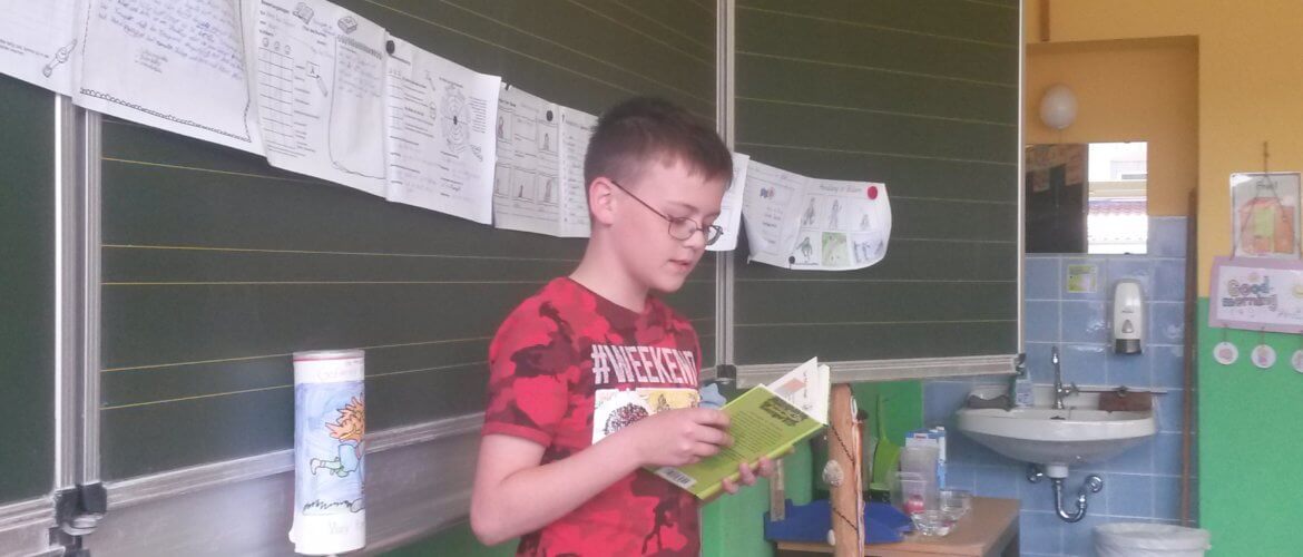 Jedes Kind aus der Klasse 4b erstellte im Deutschunterricht über einen längeren Zeitraum eine Leserolle. Nach eigenem Interesse wählten die Schüler ein Buch aus, das sie gerne lesen wollten. Parallel zur und nach der Lektüre gestalteten sie ihre Leserolle. In der Dose wurden Aufgabenblätter von bestimmten Pflicht- und Wahlaufgaben aufbewahrt, die schließlich zu einer langen Schriftrolle zusammengeklebt wurden. Die Rolle selbst wurde außen passend und ansprechend zum Buch gestaltet. Nach der schriftlichen Bearbeitung erfolgte natürlich auch eine Präsentation.