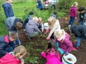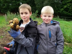 Im Rahmen des Projektes Kids an die Knolle haben die Kinder der dritten Klassen vor den Sommerferien Kartoffeln gesetzt. Sie konnten das Wachstum der Pflanzen beobachten, haben Kartoffelkäfer abgesammelt und gelernt wie und warum die Erde um die Pflanzen angehäufelt werden muss. Am 18. September war es dann endlich soweit, die Kinder haben die Kartoffeln mit viel Freude geerntet. Nach den Herbstferien wollen wir das Thema Kartoffel im Sachunterricht vertiefen und leckere Kartoffelgerichte zubereiten.