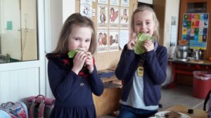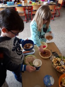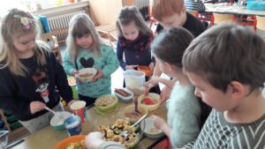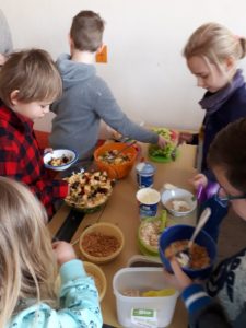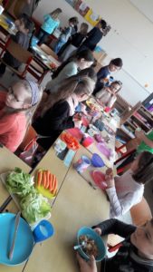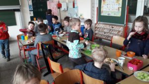 Zum Abschluss der Sachunterrichtsreihe „Gesunde Ernährung“ gab es heute ein ganz gesundes Frühstück im 1. Schuljahr.