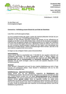 | Elternanschreiben der ADD | Elternbrief der Grundschule Alftal |
