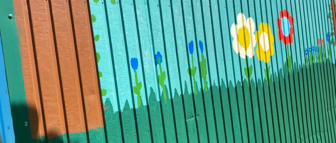 In Olkenbach angekommen, standen schon Farben und Pinsel bereit, doch bevor wir angefangen haben, konnten wir unsere eigenen Ideen für den Bauwagen auf Papier entwerfen. Nach 15 Minuten konnten wir es nicht mehr abwarten und haben angefangen den Bauwagen zu bemalen. Wir haben aus der großen Seite des Bauwagens eine Blumenwiese gemacht und auf der kleinen Seite durften wir unsere Namen verewigen. Selbstverständlich durften wir auch den Spielplatz zum Spielen nutzen. Die Zeit ging so schnell vorbei und wir mussten schon wieder aufräumen. Gegen 12 Uhr ging es wieder zurück nach Kinderbeuern.